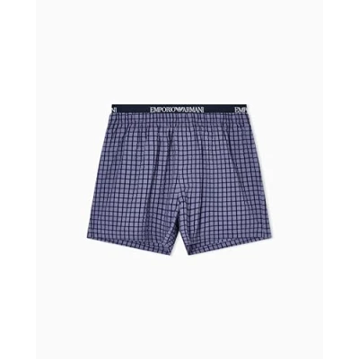EMPORIO ARMANI Men's Yarn Dyed Woven Boxer Shorts, Blue, S