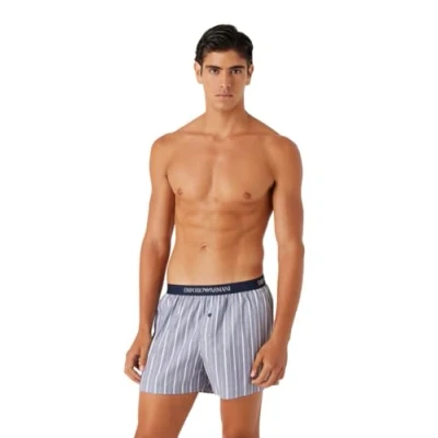 Emporio Armani Men's Yarn Dyed Woven Pajama Boxer Shorts, Blue Irregular Stripe, M UK