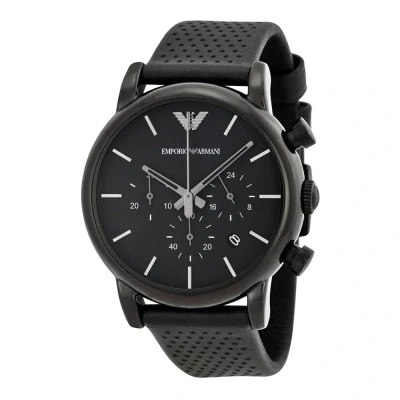 Emporio Armani Mens Chronograph Black Leather Watch material_real_leather One Size