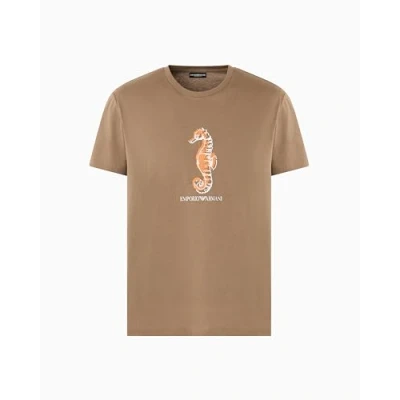 EMPORIO ARMANI Mens Round Neck T Shirt, Walnut Pr. Seahorse, XXL UK