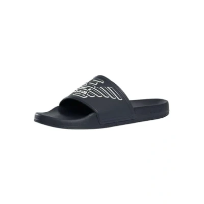 Emporio Armani POOL Slide Outline Eagle LOGO Embossed Mules, Men's, Size: 10, Blue/whisper white shoes