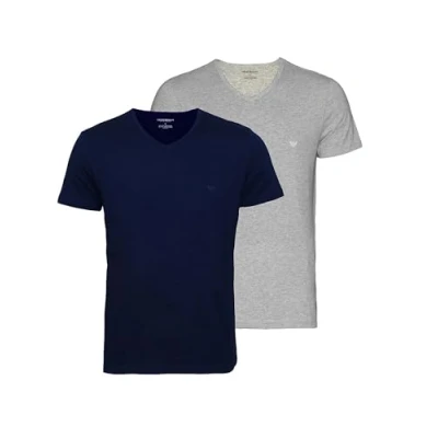Emporio Armani Underwear Men's 2 Pack T Shirt V Neck Pure Cotton, Navy/Grey Appleng, XL (Pack of 2)