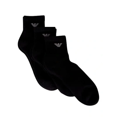 Emporio Armani Underwear Men's 3 Pack Short Socks Sporty Terrycloth, Black, TU, One Size