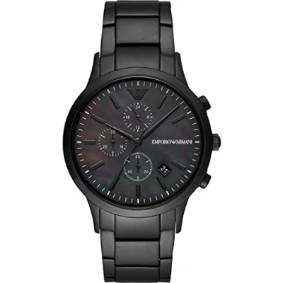 43mm case, 22mm band width, mineral crystal, Quartz movement with chronograph analog display, imported Round stainless steel case, with a black dial Black, stainless steel bracelet Water resistant up to 50m: Wearable while swimming in shallow water
