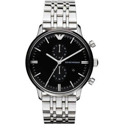 Emporio Armani AR0389 Chronograph Silver Watch. Emporio Armani Silver Watch. Water Resistant, 1 Year Warranty. Comes With Diesel Smart Display Case with Inner Cushion & User Manual. AR0389. Case Material Stainless Steel