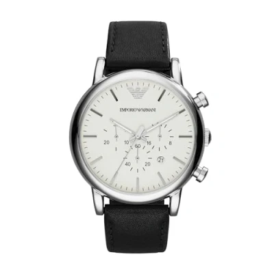 Secret SalesMan Watch Emporio Armani AR1807 Classic model, Stainless Steel Case Diameter 43 mm, White dial, Mineral glass and leather strap True Color Black