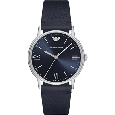 Emporio Armani Watch for Men, Three Hand Movement, 41 mm Silver Stainless Steel Case with a Leather Strap, AR11012