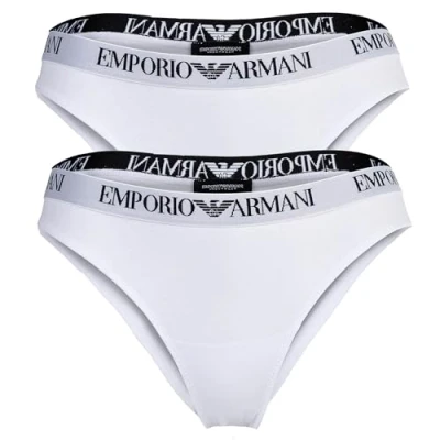 EMPORIO ARMANI Woman's Essential Cotton 2 Pack Brazilian, White, L