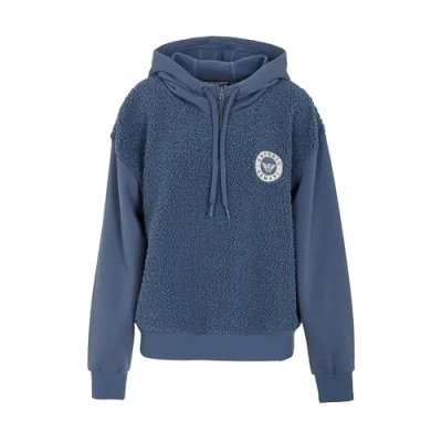 EMPORIO ARMANI WOMAN'S FUZZY FLEECE HOODIE SWEATSHIRT BLUE L