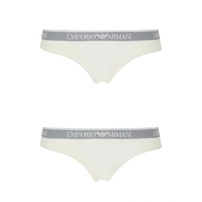 Emporio Armani Women's Stretch Cotton Studs Logoband 2 Pack Brazilian Brief, White, M