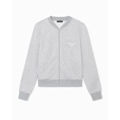 EMPORIO ARMANI WOMAN'S ICONIC TERRY OPEN SWEATSHIRT GREY S