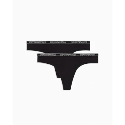 EMPORIO ARMANI Women's 2 Pack Thong Panties, Black/Black, XL