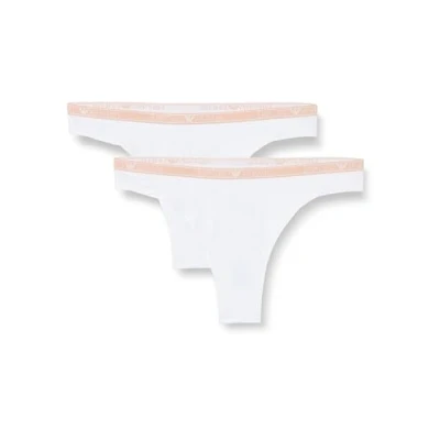 Emporio Armani Women's Essential Studs Logo 2 Pack Thong Underwear, Bianco, L