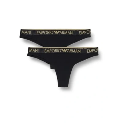 Emporio Armani Women's Iconic Microfiber 2 Pack Brasilian Underwear, Nero, XS