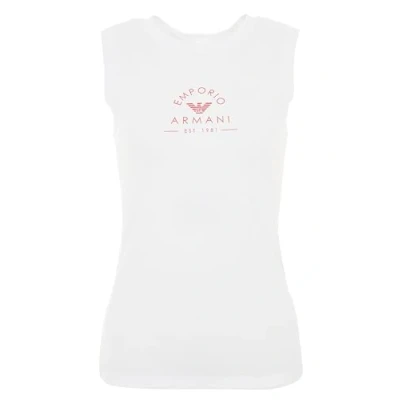 Emporio Armani Women's Iconic Stretch Cotton Logoband Loungewear Tank T Shirt, White, XL
