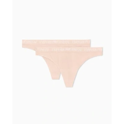EMPORIO ARMANI Women's Microfiber 2 Pack Thong Panties, Pink, L
