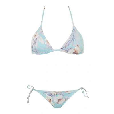 Emporio Armani Women's Triangle and String Brazilian Floral Bikini Set, Hibiscus Print/Mint, M