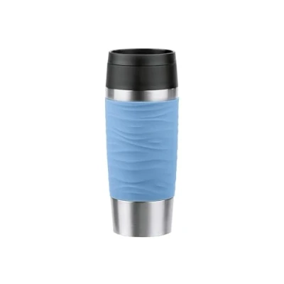 Emsa N20213 Travel Mug Wave Insulated 0.36 litres, Comfort Screw Cap, Stainless Steel, 4 Hours Hot and 8 Cool, 100% Leak Proof, Dishwasher Safe, 360 Drinking Opening, Pastel Blue