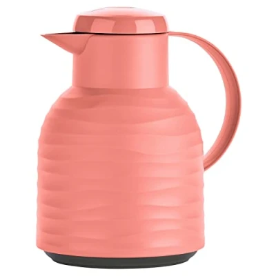 Perfect insulation performance thanks to the double-walled insulated glass flask: keeps drinks hot for 12 hours or cold for 24 hours when filled Easy to use thanks to the practical quick press closure: simply press it to open, press again to close The jug is 100% leak-proof and leak-proof when upright and closed; easy to clean by hand thanks to the large opening Trendy design: 3D surface in trendy natural wave pattern; available in fashionable colours: coral, stone, night blue and mint as well as in classic white Box contents: Emsa N40107 Samba Wave insulated jug 1 litre, coral, Weight: 0.00220462262 pounds, Manufacturer: Emsa