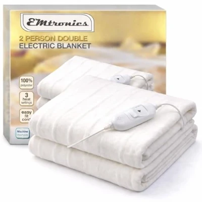 3 Heat Settings: Choose your desired heat with the three different settings, simply move the switch up and down and find your perfect setting Instant Heat: Due to the vast amount of heating wires, the blanket heats to full temperature within a few minutes. No need to heat the whole house, just turn the EMtronics Heated Blanket on and your bed will be nice and warm. Machine Washable: Need to clean the blanket? Just remove the plug, and pop it in the washing machine, up to 40 degrees Celsius. Soft Touch Blanket: This blanket is soft to the touch as its made from 100% Polyester. This alongside the super thin heating wires means you wont feel it underneath your bed sheet. Overheat Protection: Don’t worry about snoozing off with the overheat protection, it will automatically turn the blanket off if it gets too hot.