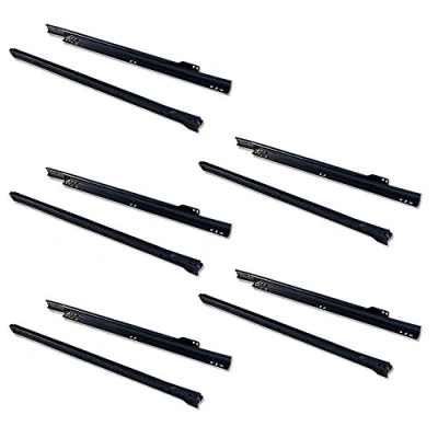Emuca drawer runners 450mm (17,7 inch) with partial extension in black colour, set of 5 sliders for