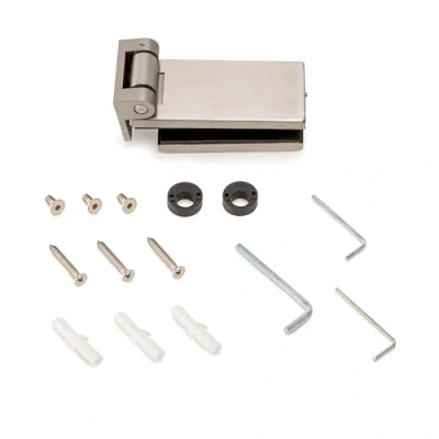 Horizontal hinge for glass door with stainless steel trims. The hinge blade is 34mm, can be installed on glass doors with a thickness of 8 to 12mm and has a pivot range of 180º. It has eccentric rings that allow an adjustment of ±2,5 mm. Two hinges support 60kg and 3 hinges 90kg. This hinge can be installed together with Emuca stainless steel glass door handles corresponding to code 9172662 or 9172762. Manufactured in steel. Includes one hinge and all mounting hardware., Manufacturer: Emuca