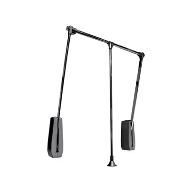 Emuca Hang pull down wardrobe rail lift wall mounted, adjustable width 600 83mm (23,6 32,6 inch), Black, Steel and Plastic