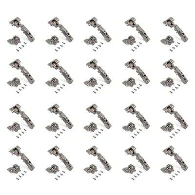 Emuca Kit of 20 Full Overlay Hinge X91 with Soft Close and Plate, Screw on, 105º Opening, Titanium, Steel