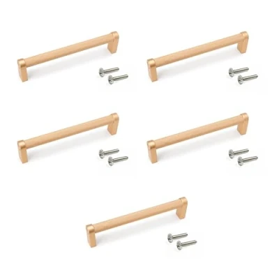 Emuca Lot of 5 Furniture Handles, L141mm, 128mm Interaxis, Aluminium, Gold Painted