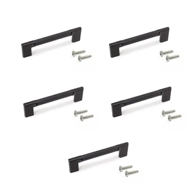 Set of 5 handles to install horizontally or vertically Length 157 mm. Valid for center distance (distance between mounting holes) 128 mm. M4 screws for installation included. Made of aluminium with a black painted finish. Each piece individually packed to avoid scratches and bumps., Manufacturer: Emuca
