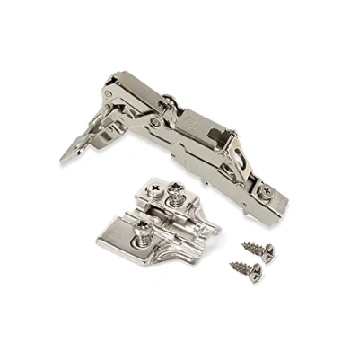 Emuca Pack of 2 X91 Full Overlay Hinges 165 Degrees Opening with Soft Closing and Euro Screw in Plates, Height 0, Steel, Nickel Plated