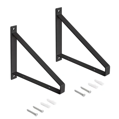 Pair of Shelf straight wood shelf supports with triangular shape, ideal for mounting shelves on the wall and making shelves in any room of your home. It has a load capacity of 30kg (66 lb), with an elegant triangular design that holds the wood to prevent slipping and at the same time turns the hardware into a decorative element. For installation, two brackets per shelf must be fitted and fixed to the wall with the screws and plugs included in the scope of supply. The brackets have two Ø6.8mm (0,26 inch) holes to fix a recommended 600x200mm (23,6x7,87 inch) board (not included) with wood screws (not included). They are made of steel with a black painted finish., Weight: 1.5873282864 Pounds, Manufacturer: Emuca