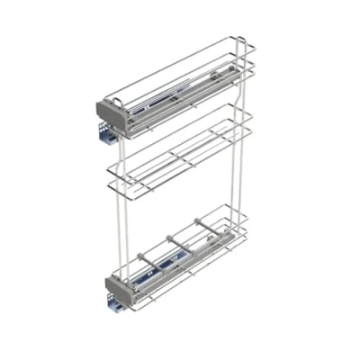 Emuca Pull out bottle rack with soft closing, left side, 3 trays, height 800mm (31,4"), module 150mm (5,9"), Steel, Chrome plated