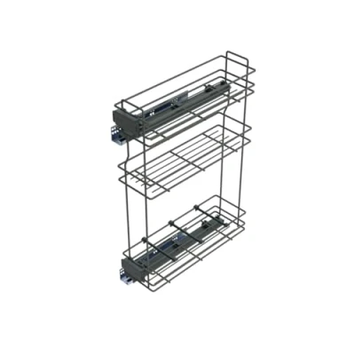 Emuca Pull out bottle rack with soft closing, left side, 3 trays, height 800mm (31,4"), module 200mm (7,8"), Steel, Anthracite Grey