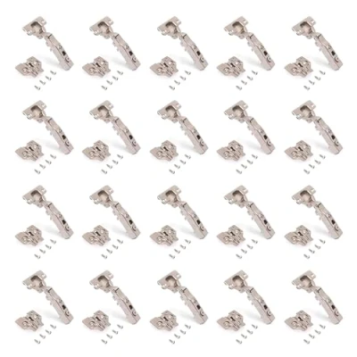 Emuca Set of 20 Straight Hinges X91N with Screw on Inserts, Height 0, Steel, Opening 105º, Nickel Plated.