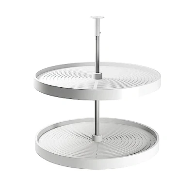 Circular rotating racks designed to corner units. System consisting of 2 trays of Ø710mm and an aluminum bar for installation in 800mm units. Easy to assemble and height adjustable between 650mm and 710mm. Trays made from polyethylene in white colour, recyclable, anti-static and resistance to impact and UV rays. Maximum load 20kg per tray. Central bar produced from anodized matt aluminium., Weight: 12.12542441 Pounds, Manufacturer: Emuca