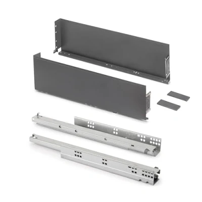 The Simplex drawer with metal sides is ideal for kitchen, bathroom, and home furniture, with no need for special machining. It has a height of 159 mm (6,2") with an elegant design, for drawers with a depth of 440 mm (17,3"), offering ample interior space and a modern finish. Allows front adjustment of ±2 mm vertically using an eccentric and ±1.5 mm horizontally, plus height adjustment through the Silver L full-extension runners with soft-close mechanism. Provides a load capacity of 25 kg (55,1 lb), ensuring strength and smooth operation. Made of steel with a grey anthracite finish., Manufacturer: Emuca