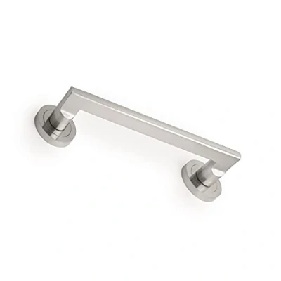 Emuca Sliding Door Handle 50mm (1,96 inch) Diameter Rose, Pull Push Straight Design, Aluminium, Satin Nickel, 4 Units.