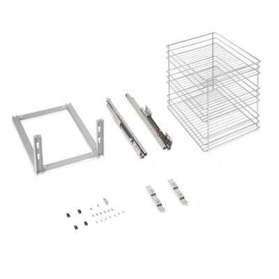 Supra pull-out drawers with bottom fixing and soft closing, designed to maximise organisation in lower kitchen units. Compatible with 400 mm wide units. Dimensions of the drawer: height 487 mm, width 345 mm and depth 470 mm. Suitable for 16, 18 and 19 mm boards. Mounted directly on the base of the unit using full extension runners with soft closing. Full adjustment: depth (±1.5 mm), horizontal alignment (±2.25 mm) and height (±7.5 mm). Improves accessibility and optimises space, making it ideal for modern kitchens with practical and functional designs. Made of steel with a chrome plated finish., Weight: 17.63698096 pounds, Manufacturer: Emuca