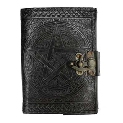 Enchanting Black Leather Journal 17.5cm x 13cm (1 Pc.) Embossed Cover with Rustic Paper Pages, Pentagram Design Metal Closure, Handcrafted in India Perfect for Notes & Sketches