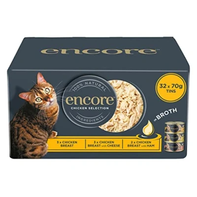 Encore 100% Natural Wet Cat Food Multipack Chicken Selection in Broth (Pack of 32 x 70g Tins)