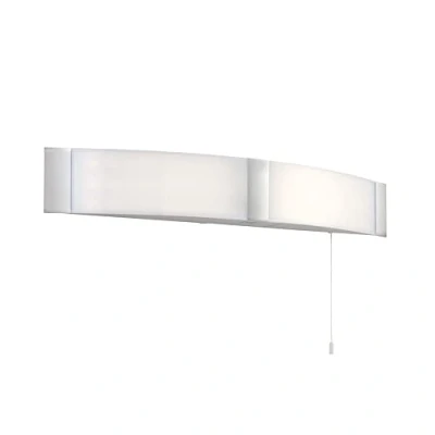 Sleek curved LED shaver light with an opal pc and chrome acrylic finish. IP44 so suitable for bathroom zone 2 or zone 1 with a 30MA RCD. Supplied with a pull cord switch