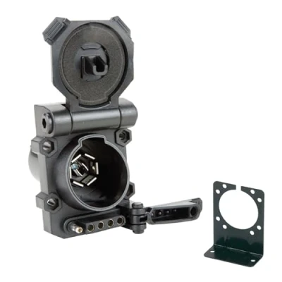 Provides multiple towing options from one connector Reinforced easy-grip lid opens 180 degrees for easier connections Internal seal provides ultimate weatherproofing Long-life oversized hinge Mounting bracket, hardware, and terminal grease packet included