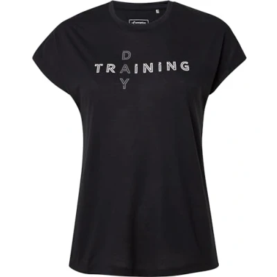 Women's short-sleeved T-shirt It is suitable for many sports activities It is made of stretchable synthetic material that allows freedom of movement It is decorated with a graphic pattern on the front Short-sleeved t-shirt