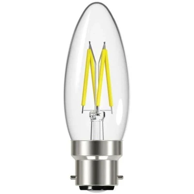 Energizer 5w (=40w) LED Clear Filament Decorative Candle Bulb, Extra Warm White 2700k BC/Bayonet Cap ENGS12855