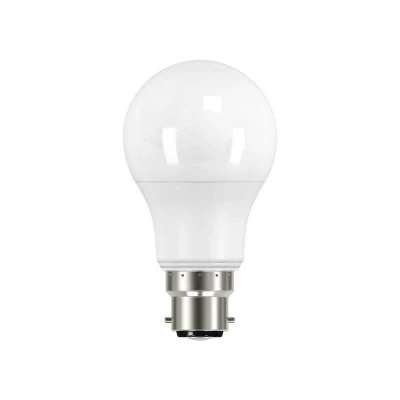 General description This Energizer® LED Opal GLS Non-Dimmable Bulb features a B22 (bayonet) fitting and is designed to replace traditional incandescent bulbs. It provides a warm white light at 2700K and delivers 806 lumens of brightness. This bulb is non-dimmable, energy-efficient, consuming only 8.2W while offering the same brightness as a 60W incandescent bulb. With a long lifespan of over 30,000 hours, it is suitable for various residential and commercial lighting applications. Technical specifications Fitting: B22 (bayonet) Shape: GLS (general lighting service) Color temperature: 2700K (warm white) Brightness: 806 lumens Wattage: 8.2W (equivalent to 60W incandescent) Rated lifespan: over 30,000 hours Switching cycles: 40,000 Dimensions: 60 x 109 mm Dimmable: No Compatibility and accessories Compatible with standard B22 sockets Suitable for use in ceiling fixtures, lamps, and other B22-compatible fittings Installation Ensure the power is turned off before installation Insert the