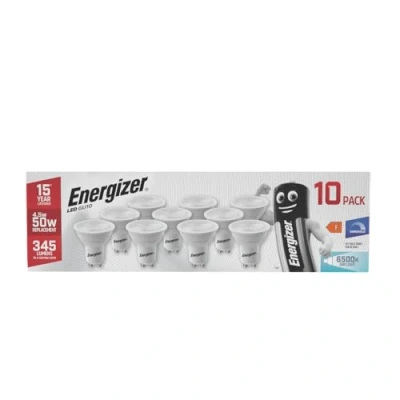Energizer Dimmable GU10 LED Bulbs Daylight White 6500K Light Bulb Pack of 10 50W Halogen Spotlight Equivalent 345LM Energy Saving