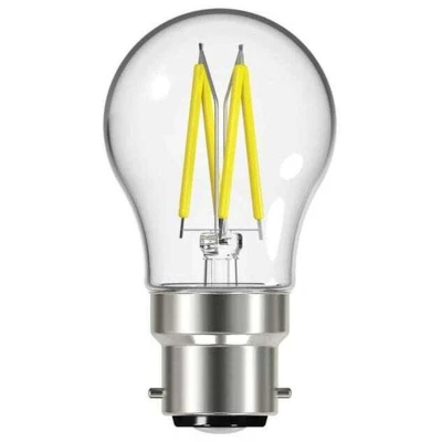 General description This Energizer LED BC (B22) Golf Filament Non-Dimmable Bulb features a decorative filament design, making it ideal for decorative fixtures. It replicates the appearance and light output of traditional halogen bulbs while offering significant energy savings of up to 85% compared to halogen equivalents. The bulb provides instant, flicker-free light and has a long lifespan of approximately 15,000 hours. Technical specifications Fitting: BC (B22) Input Wattage: 4W (40W equivalent) Lumens of Light: 470 lm Colour Temperature: 2,700K (Warm White) Switching Cycles: 40,000 Average Rated Life: 15,000 hours Dimensions: 45 x 78 mm Dimmable: No Compatibility and accessories Compatible with BC (B22) sockets Installation Simply screw into compatible BC (B22) fixtures for immediate use. Usage Suitable for decorative lighting in homes, restaurants, or any setting where a vintage filament look is desired. Not dimmable, so use with non-dimming fixtures. Other information