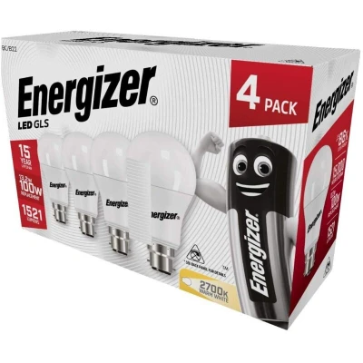 Energizer GLS Replacement LED Bulb 4 Pack (Warm White B22, 100W), (ENGS14423)
