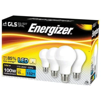 Energizer GLS Replacement LED Bulb 4 Pack (Warm White E27, 100W), (ENGS14424)